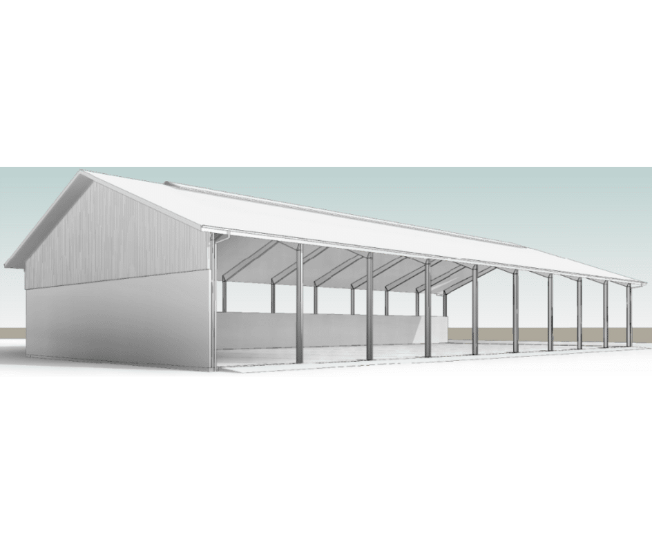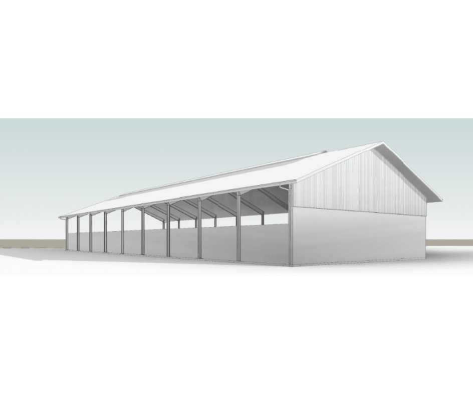 Denne hal kombinerer enkel funktionalitet med et rent, industrielt udtryk – ideel til landbrug, energianlæg eller entreprenørbrug.