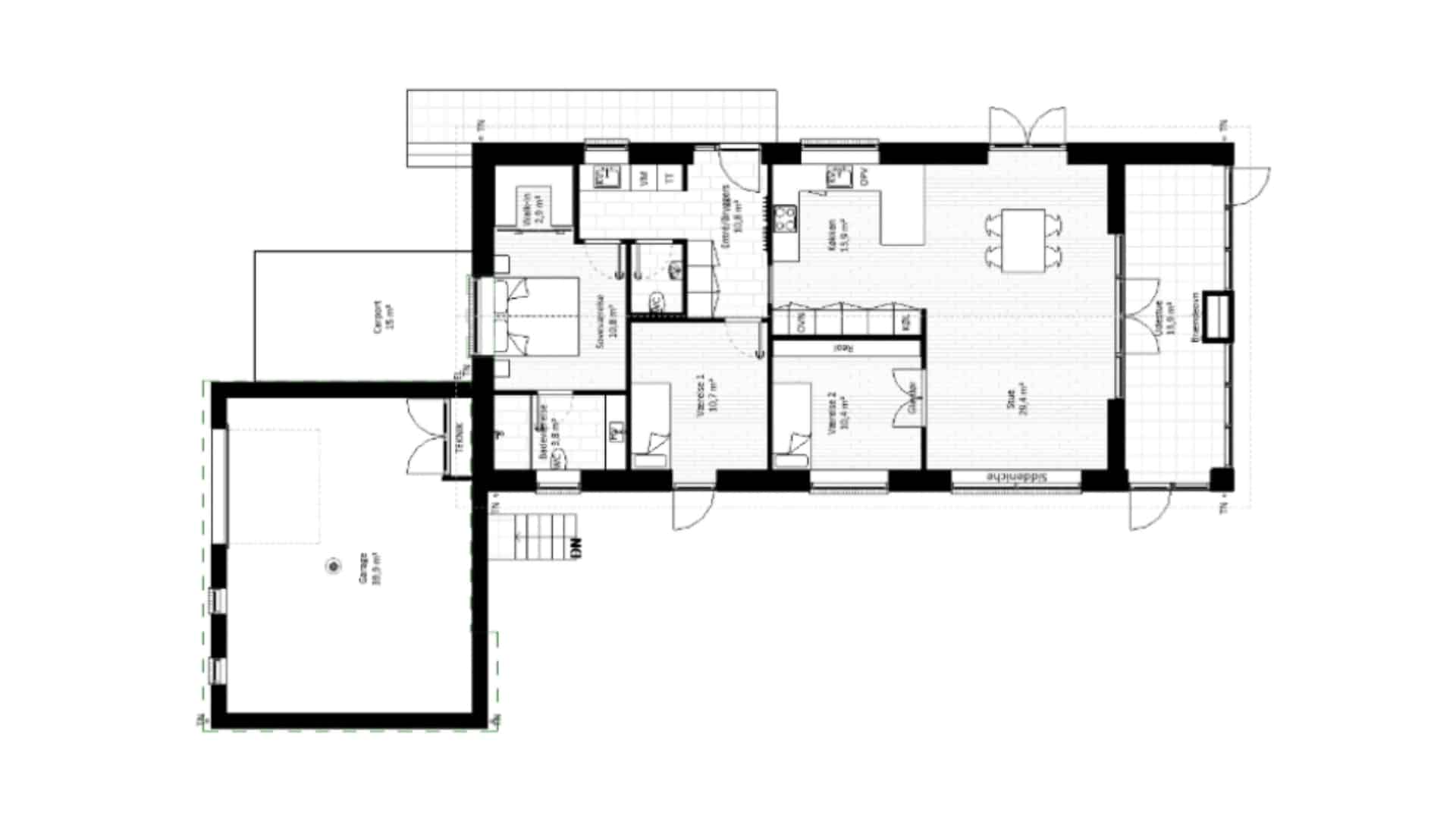 Nybygget hus i Ølgod – 120 m² bolig i ét plan med garage, carport og udestue