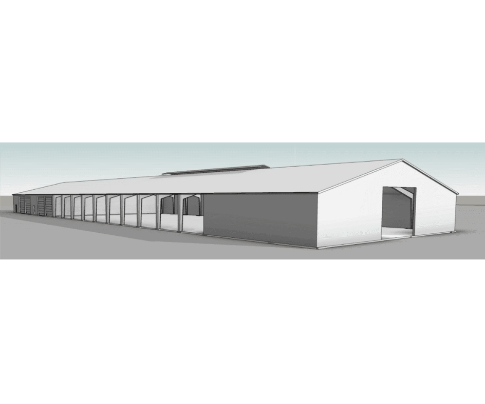Denne hal kombinerer enkel funktionalitet med et rent, industrielt udtryk – ideel til landbrug, energianlæg eller entreprenørbrug.